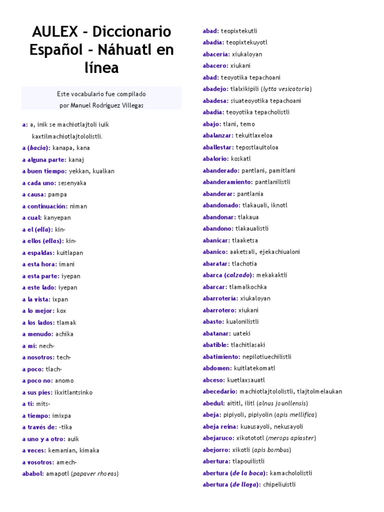 Aulex Diccionario Nahuatl Espanol En Linea Aguacate Inglaterra